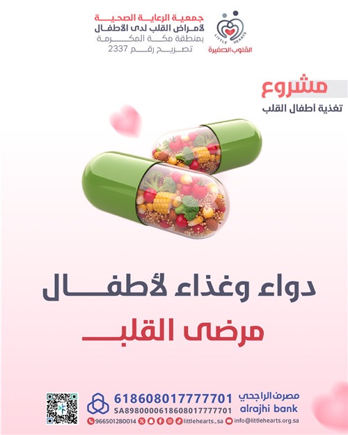 يهدف مشروع تغذية أطفال القلب إلى توفير تغذية خاصة مصممة خصيصا لاحتياجات الأطفال الذين يعانون من أمراض القلب، وذلك بالتعاون مع نخبة من أطباء القلب وأخصائي تغذية. نسعى من خلال هذا المشروع إلى توفير حياة أفضل لهؤلاء الأطفال وعائلاتهم.